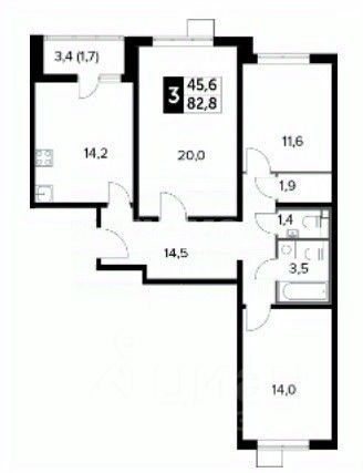 Общая площадь 83 кв.метра.